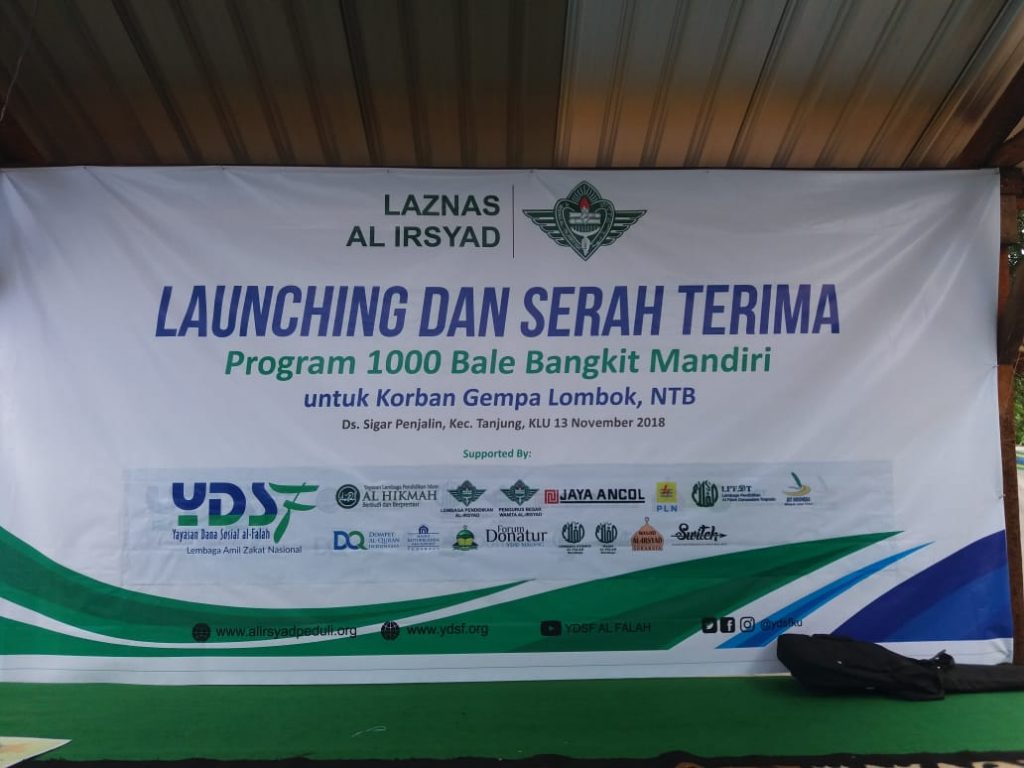 Lombok, Alhamdulillah hari ini selasa 13 nov 2018 telah dilaksanakan serah terima bale/rumah bangkit mandiri untuk korban gempa lombok dari donatur melalui laznas al irsyad. Sesuai dgn programnya laznas al irsyad berkomitmen membangun 1000 unit rumah di lombok.