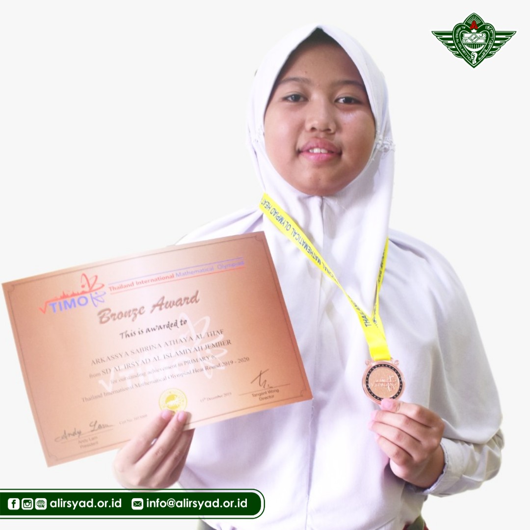 Jember – Arkassya Sabrina Athaya Althaf, Siswi SD Al-Irsyad Al-Islamiyyah Jember berhasil membawa pulang medali perunggu dalam ajang Thailand International Mathematical Olympiad (TIMO), yang diselenggarakan di Surabaya. Minggu, (15/12/19).