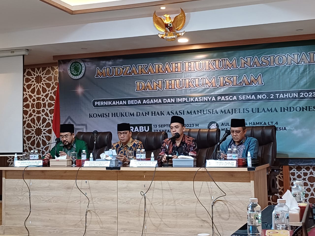 Dari hasil mudzakarah, MUI merekomendasikan untuk mempertegas SEMA nomor 2 tahun 2023, bahwa pernikahan beda agama adalah haram. Turut hadir sebagai pembicara dalam acara tersebut, Ketua MUI Bidang Fatwa, Prof. Dr. H. M. Asrorun Ni’am Sholeh, M.A., Wasekjen MUI Bidang Hukum dan HAM, Dr. H. Ikhsan Abdullah, S.H., M.H., Pakar Hukum Keluarga Universitas Indonesia, Neng Djubaedah, S.H., M.H., Ph.D., Dosen HTN/HAN, Tohadi, S.H., M.Si., dan Wakil Ketua Pengadilan Agama Malang, Nurhasan Abdurrahman, S.H.I., M.E. Acara ini juga dihadiri oleh beberapa tokoh seperti, Wakil Menteri Agama Republik Indonesia, H. Saiful Rahmat Dasuki, S.IP., M.Si., dan Ketua Komisi Hukum dan HAM MUI, Prof. Dr. H. Deding Ishak, S.H., M.M.