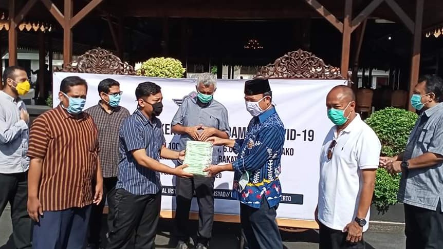 Bantuan senilai lebih dari 1M tersebut diserahkan oleh Ketua Yayasan Al-Irsyad Al-Islamiyyah Purwokerto kepada Bupati Banyumas, Bapak Ir. Achmad Husein. Yang selanjutnya diberikan secara simbolis kepada warga dan Dinas Kesehatan Banyumas.
