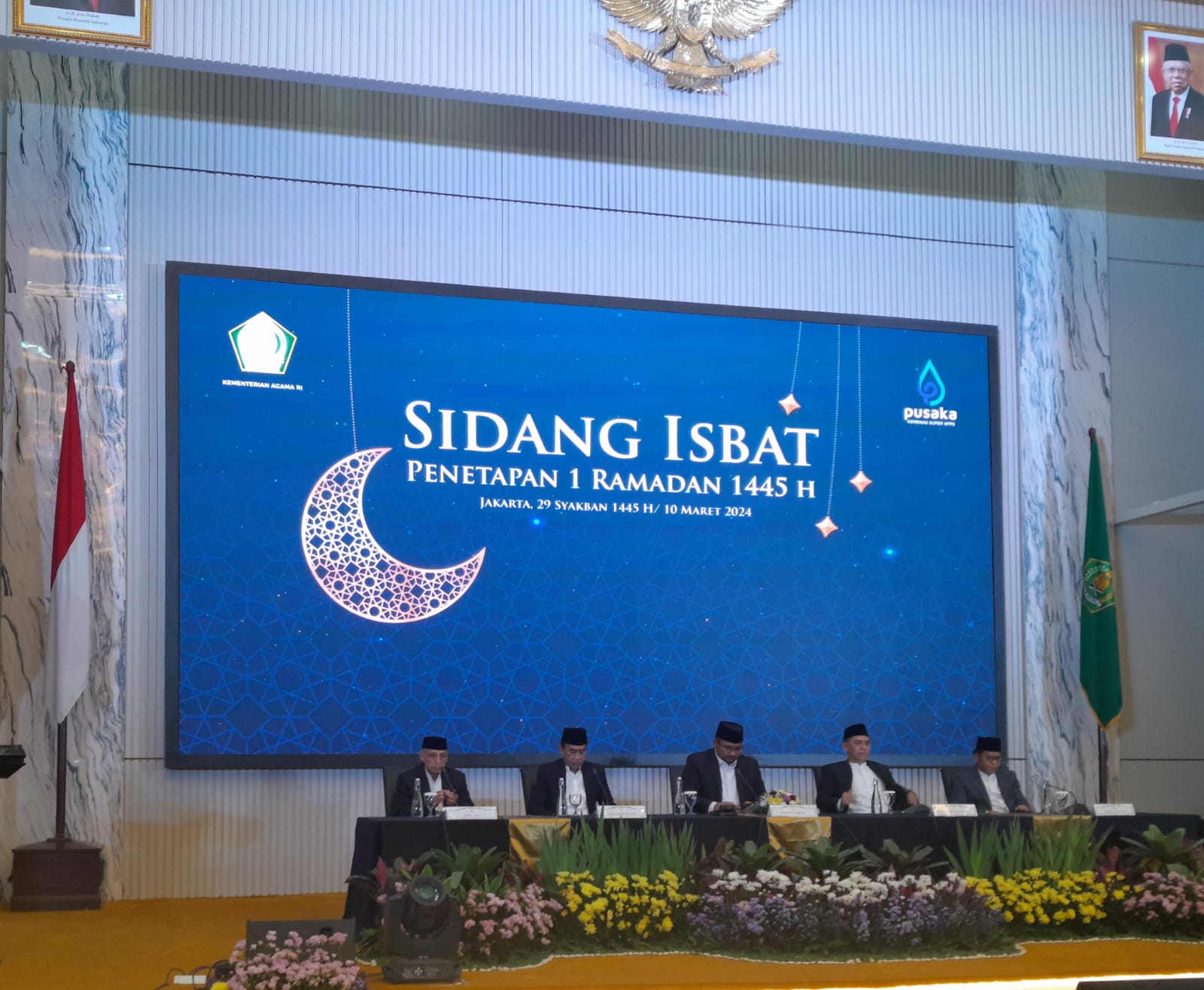 Sebelumnya, Tim hisab rukyat Kementerian Agama (Kemenag) melaporkan pemantauan posisi hilal pada petang ini dari seluruh Indonesia. Kesimpulannya, hilal tak bisa diamati sehingga secara hisab 1 Ramadan 1445 H jatuh pada Selasa 12 Maret 2024.