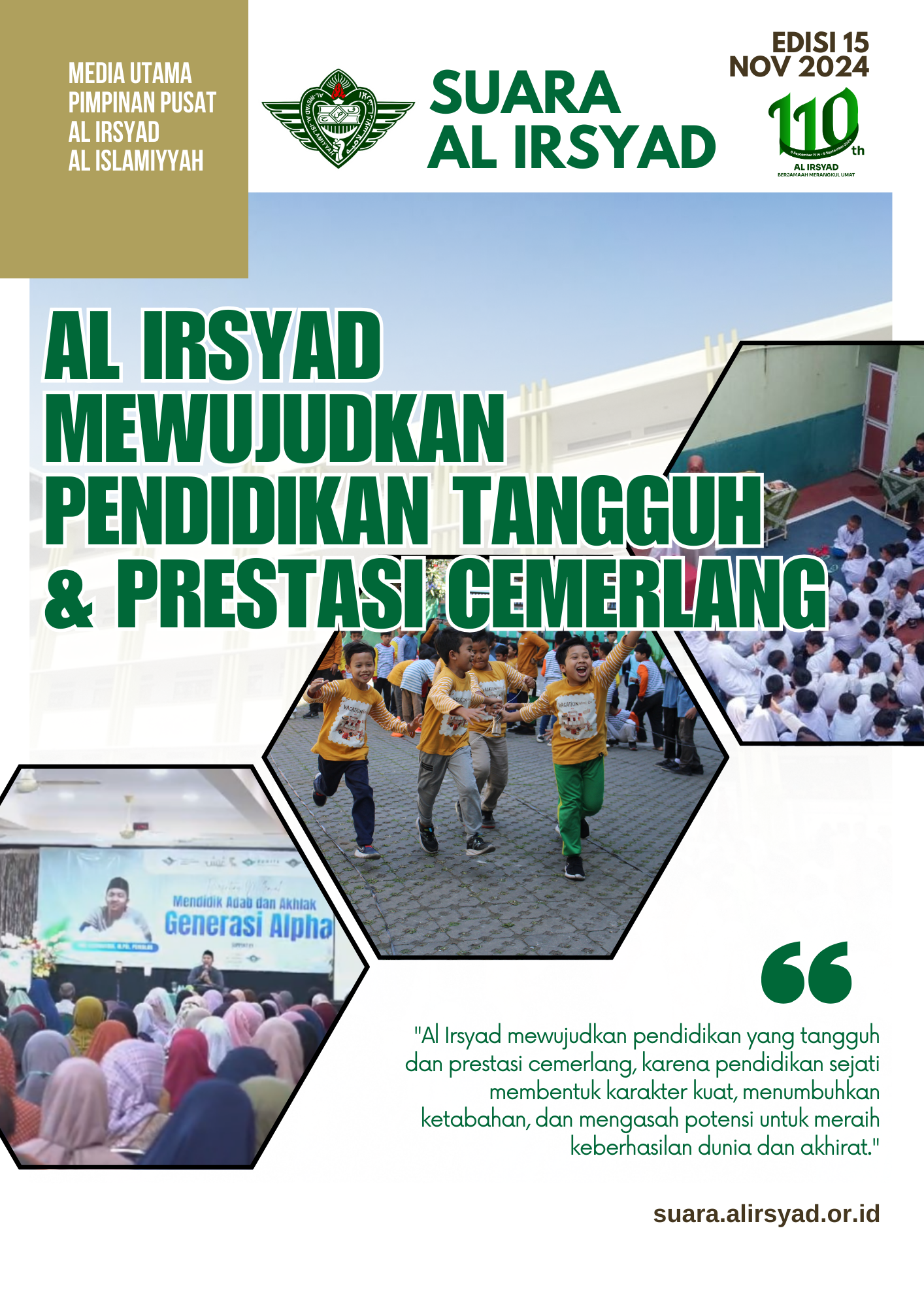 Alhamdulillah, Suara Al Irsyad (SAI) edisi ke-15 bulan November 2024 telah terbit. Pada edisi kali ini, selain menyajikan berita dan informasi dari berbagai aktivitas Al Irsyad, termasuk kegiatan di cabang, banom, serta program-program Majelis, kami juga menghadirkan artikel-artikel yang InsyaAllah dapat memperkaya khazanah informasi bagi kita semua. Silakan mengirimkan pertanyaan, naskah tulisan, dan saran melalui email ke suara@alirsyad.or.id.