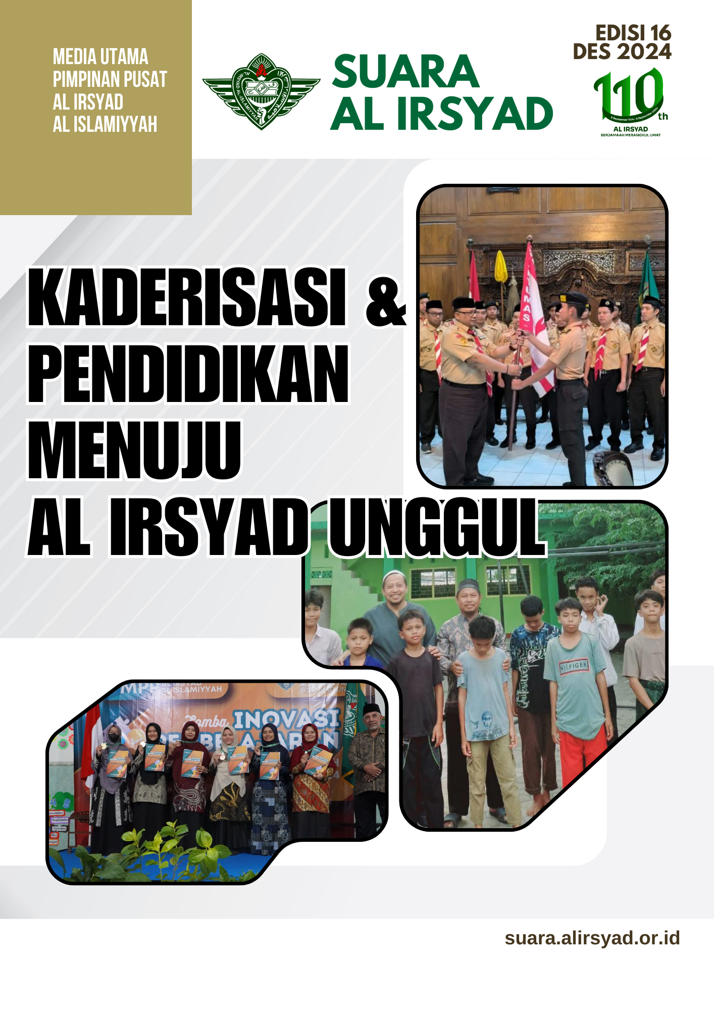 Alhamdulillah, Suara Al Irsyad edisi ke-16 bulan Desember 2024 telah terbit. Kali ini, kami mengangkat geliat pendidikan yang semakin semarak dan kaderisasi yang mulai digairahkan oleh para pengurus Al Irsyad Al Islamiyyah di seluruh tanah air.