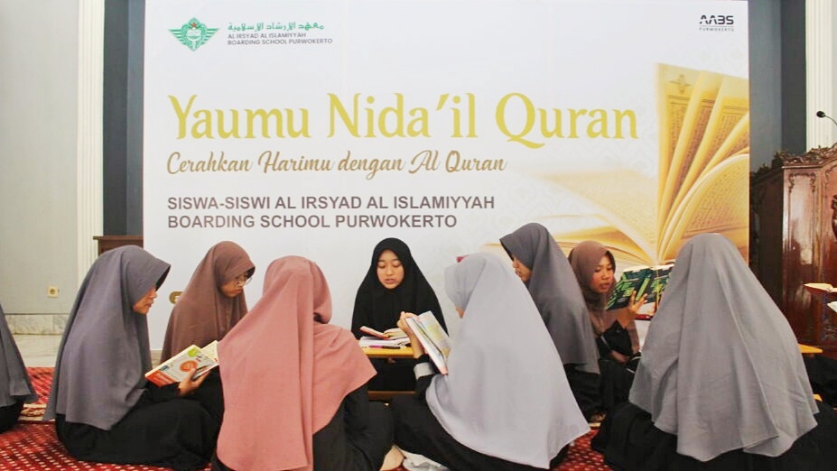 Purwokerto – Pada Sabtu (26/08), Guru Al-Quran dari Al Irsyad Al Islamiyyah Boarding School (AABS) Purwokerto menggelar acara Yaumu Nida’il Quran, sebuah halaqoh Al-Quran yang pertama kali diadakan di Masjid Fatimatuzzahra (Mafaza) di Kompleks UNSOED, Grendeng Purwokerto.